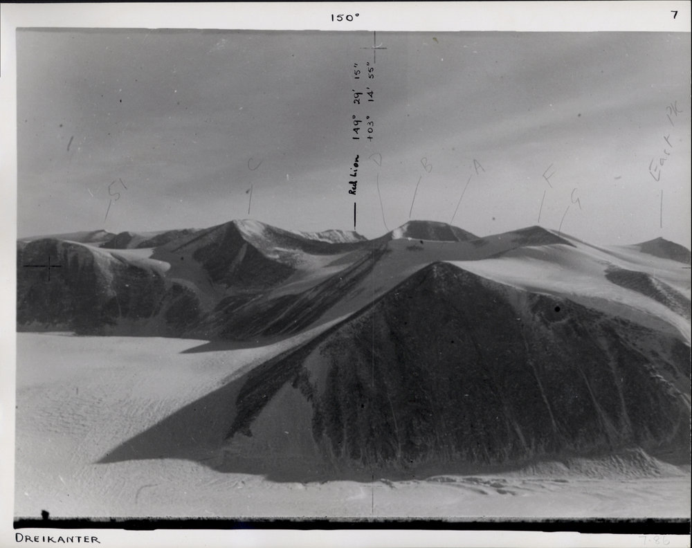 LocationDreikanterNotes on original7 - From Dreikanter, England. Azimuth on Mt England 180 00' 40". Red LionLINZ ReferenceE35 - 150 degreesLatitude76 51'00"Height1780 (by Aneroid)