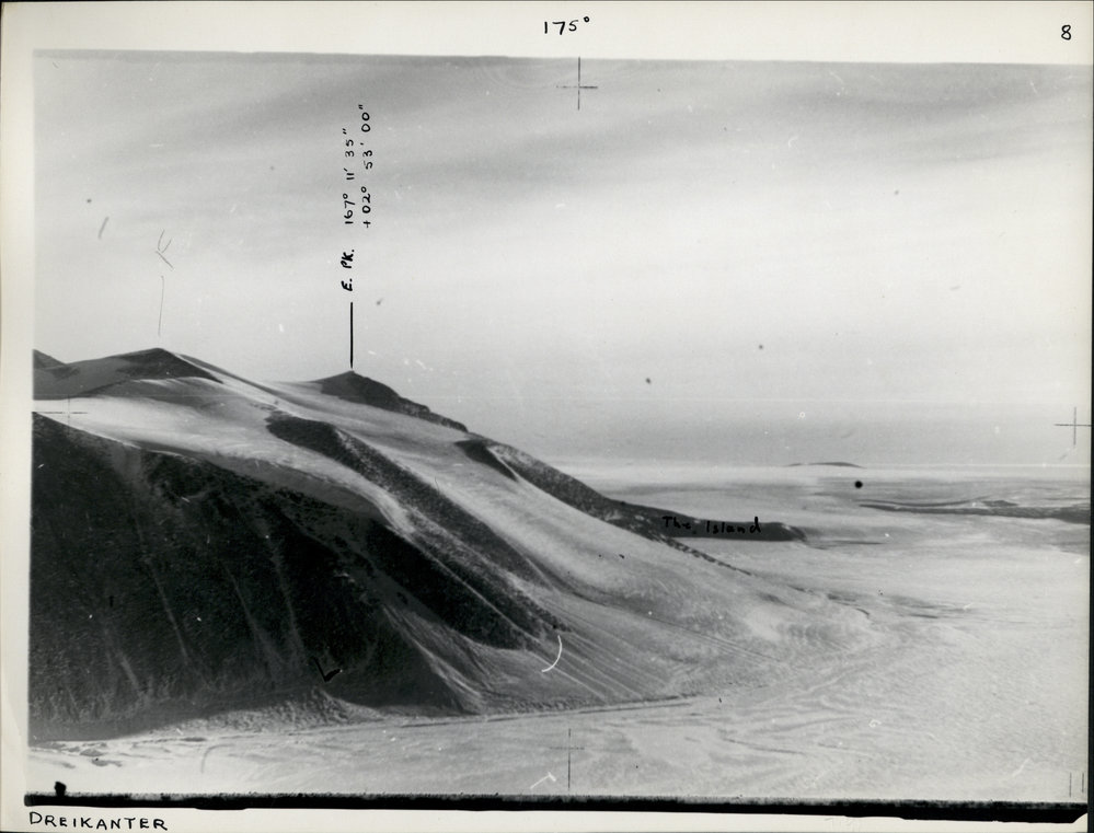 LocationDreikanterNotes on original8 - From Dreikanter, England. Azimuth on Mt England 180 00' 40". E PkLINZ ReferenceF4-4A - 175 degreesLatitude76 51'00"Height1780 (by Aneroid)