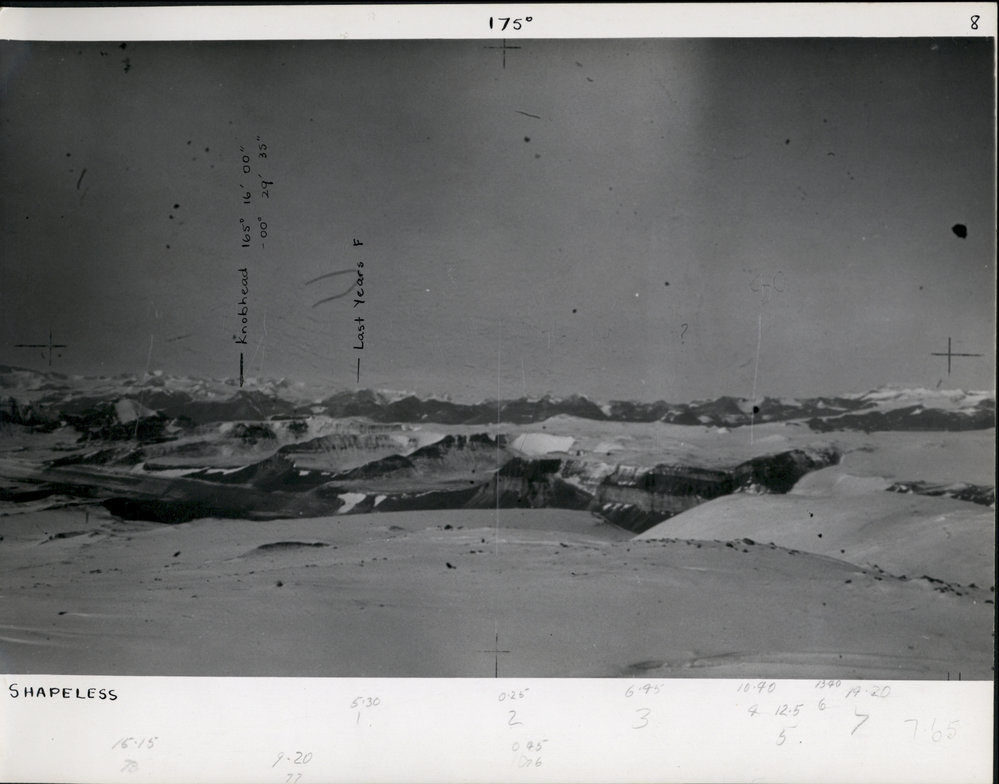 LocationShapelessNotes on original8 - From Shapeless. Origin Tent Pk. Knobhead, Last Years F - compas book p 76LINZ ReferenceR6 - 175 degreesLatitude77 25' 00"Longitude160 20'00"