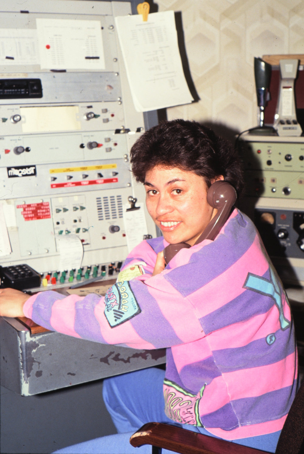 DescriptionTelecom supervisor on telephone in front of communications equipment at Scott BaseDepictsBella Kara PhotographerYvonne MartinSeason1991-1992Date Taken1991-1992 SeasonOriginalSlideNo. People1LocationScott BaseGeolocation[1] Position