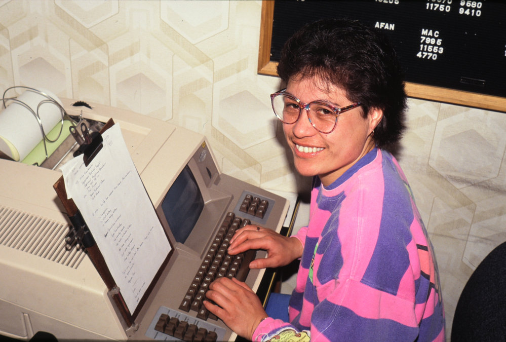 DescriptionPersonnel working on communications equipmentDepictsBella Kara PhotographerYvonne MartinSeason1991-1992Date Taken1991-1992 SeasonOriginalSlideNo. People1LocationScott BaseGeolocation[1] Position