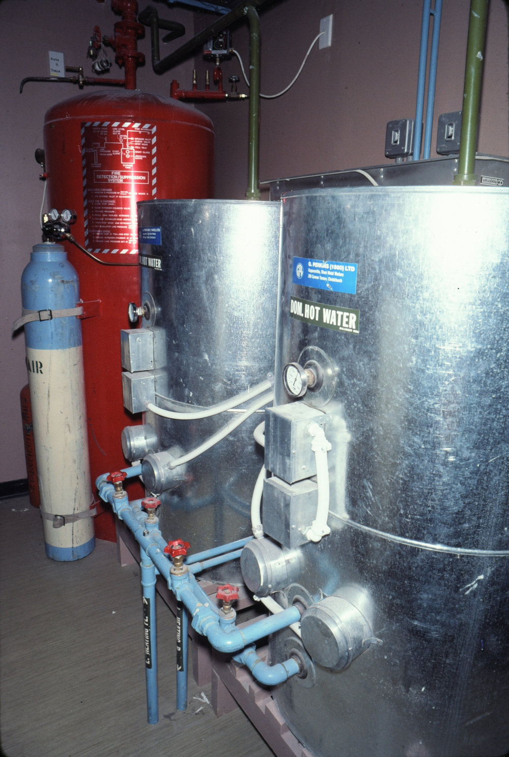 DescriptionWater heater and sprinklers at 3A plant room Scott BasePhotographerKim WesterskovSeason1982-1983Date Taken1982-1983 SeasonOriginalSlideLocationScott BaseGeolocation[1] Position