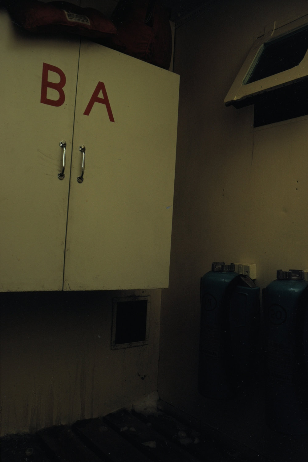 DescriptionBA locker on wall in D Hut above extinguishers at Scott BasePhotographerFrederick P SzydlikSeason1973-1974Date TakenBetween 1st December 1973 and 31st December 1973OriginalSlideLocationScott BaseGeolocation[1] Position
