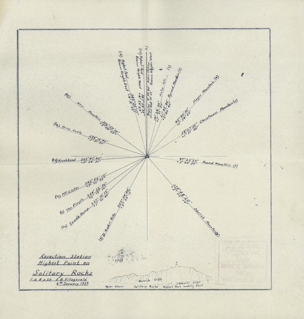 NZ Geological Survey and Antarctic Expedition 1958-59 "Wood Bay Expedition" - Solitary Rocks Resection Station (Highest Point on Solitary Rocks) (1959-01-04). Antarctica NZ, accessed 13/04/2026, https://adam.antarcticanz.govt.nz/nodes/view/58101