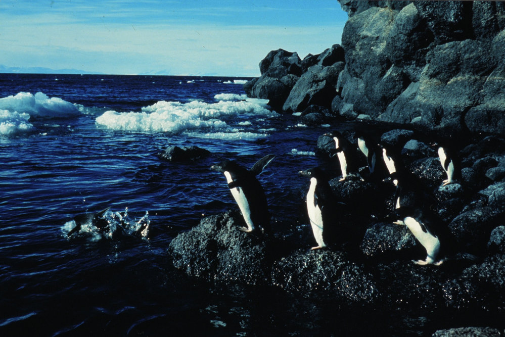 Adelie Penguins off fishing