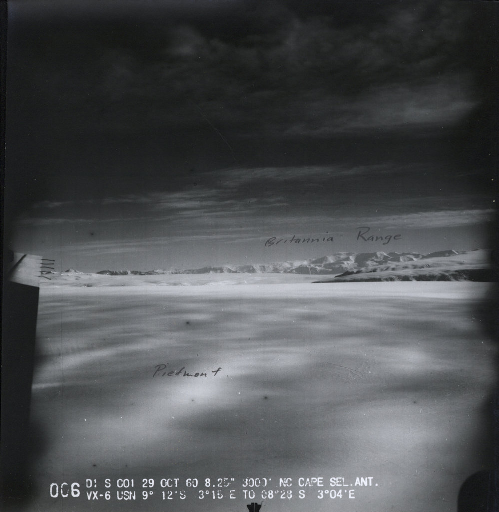 Aerial Recce Flight VX-6 US Navy, Selborne Glacier, October 1960 (29/10/1960). Antarctica NZ, accessed 02/04/2026, https://adam.antarcticanz.govt.nz/nodes/view/59402