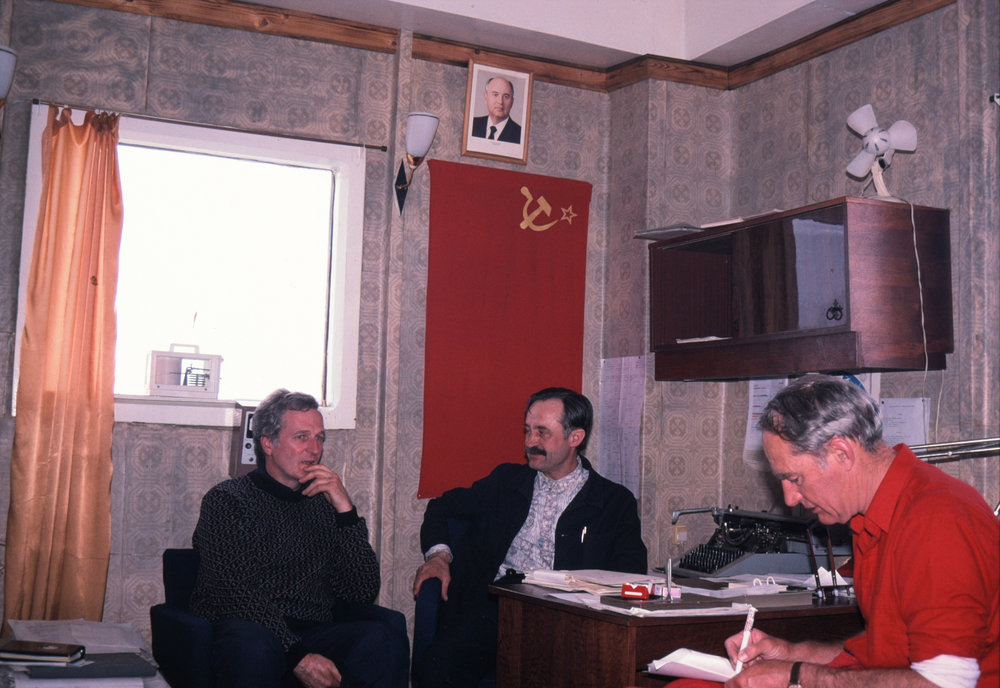 John Penny and Dennis McLean with Base commander Bellingshausen Station. Antarctica NZ, accessed 04/04/2026, https://adam.antarcticanz.govt.nz/nodes/view/5973