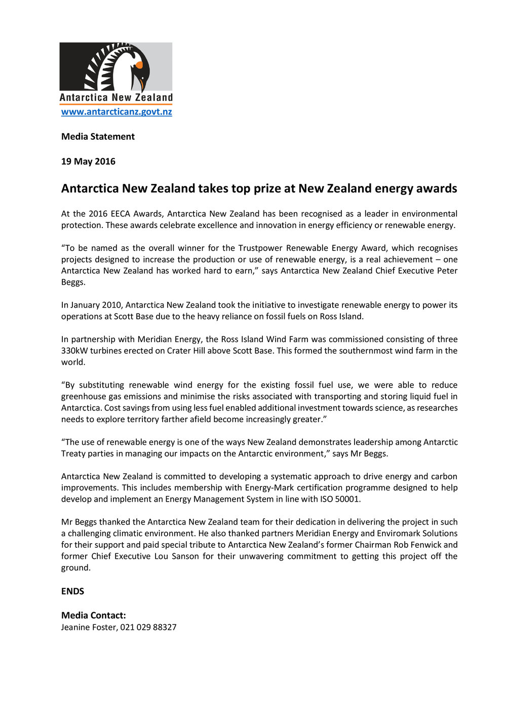 Jeanine Foster, PR: Antarctica New Zealand takes top prize at New Zealand energy awards (20160519). Antarctica NZ, accessed 26/03/2026, https://adam.antarcticanz.govt.nz/nodes/view/60301