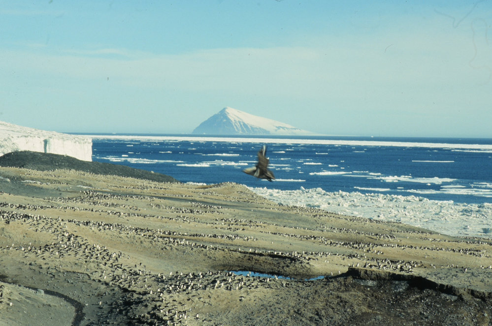 DescriptionSkua in flight at Cape Bird, Beaufort Island in backgroundPhotographerRick WilsonSeason1990-1991Date Taken1990-1991 SeasonOriginalSlideLocationCape BirdGeolocation[1] Position