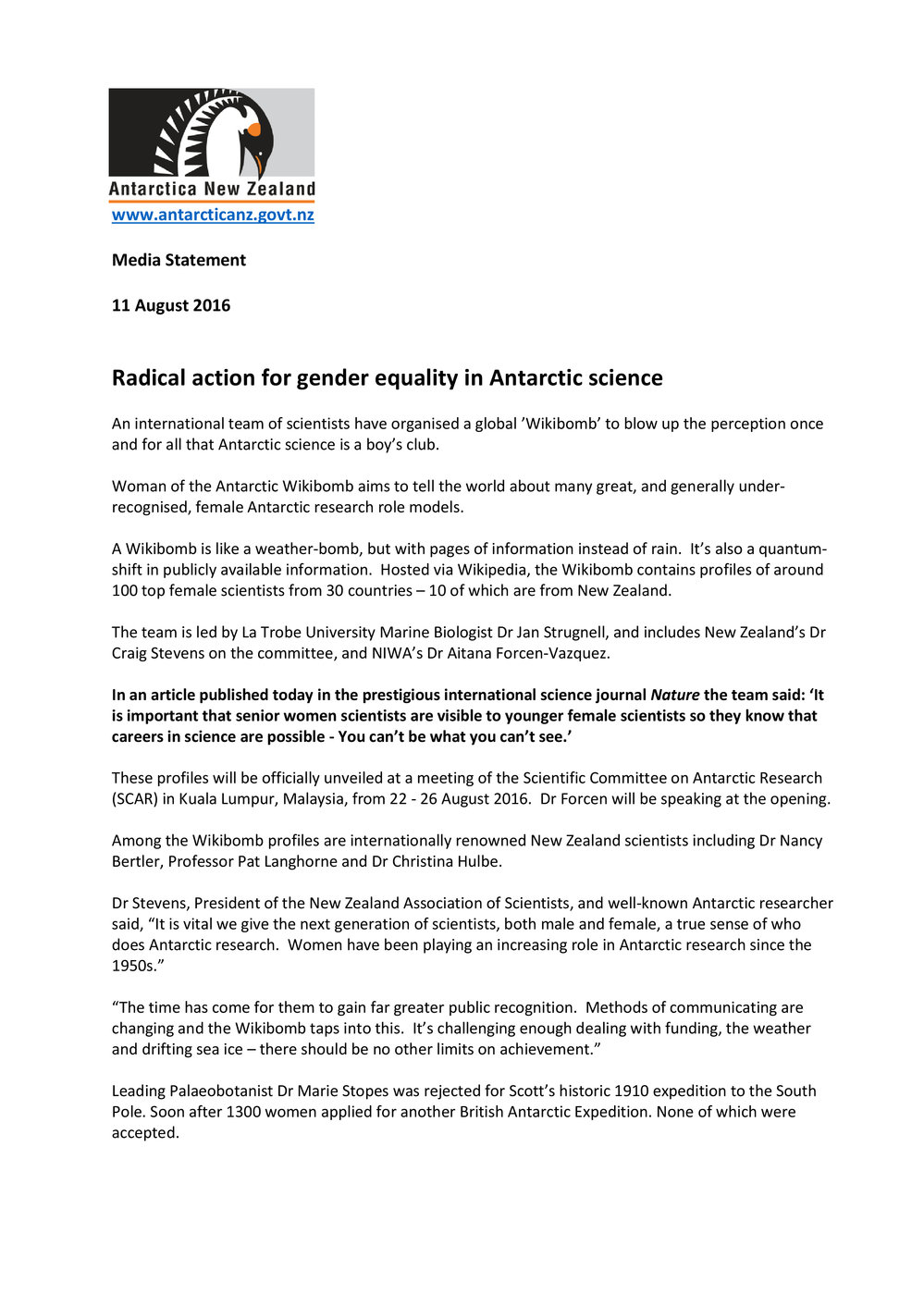 Jeanine Foster, PR - Radical action for gender equality in Antarctic science (2016-08-12). Antarctica NZ, accessed 20/03/2026, https://adam.antarcticanz.govt.nz/nodes/view/61046