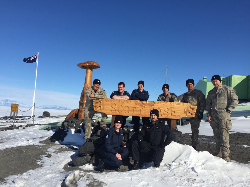 151111 NZDF Scott Base crew by Scott Base sign on Armistice Day2, Jeanine Begg. Antarctica NZ, accessed 04/04/2026, https://adam.antarcticanz.govt.nz/nodes/view/61874