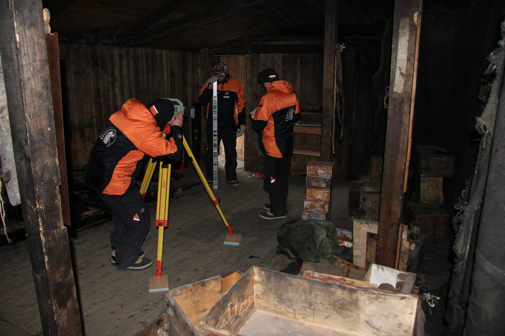 Jerry Simonsen Chris Crook and Andrew Cowie levelling in Discovery Hut 5/12/16