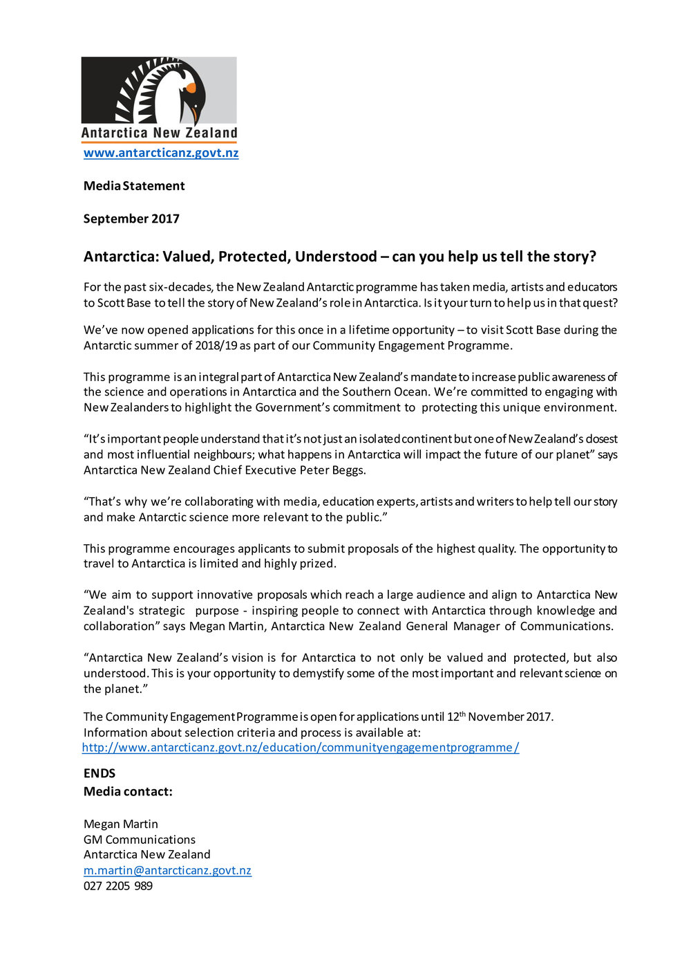 PR - Antarctica: Valued, Protected, Understood – can you help us tell the story?