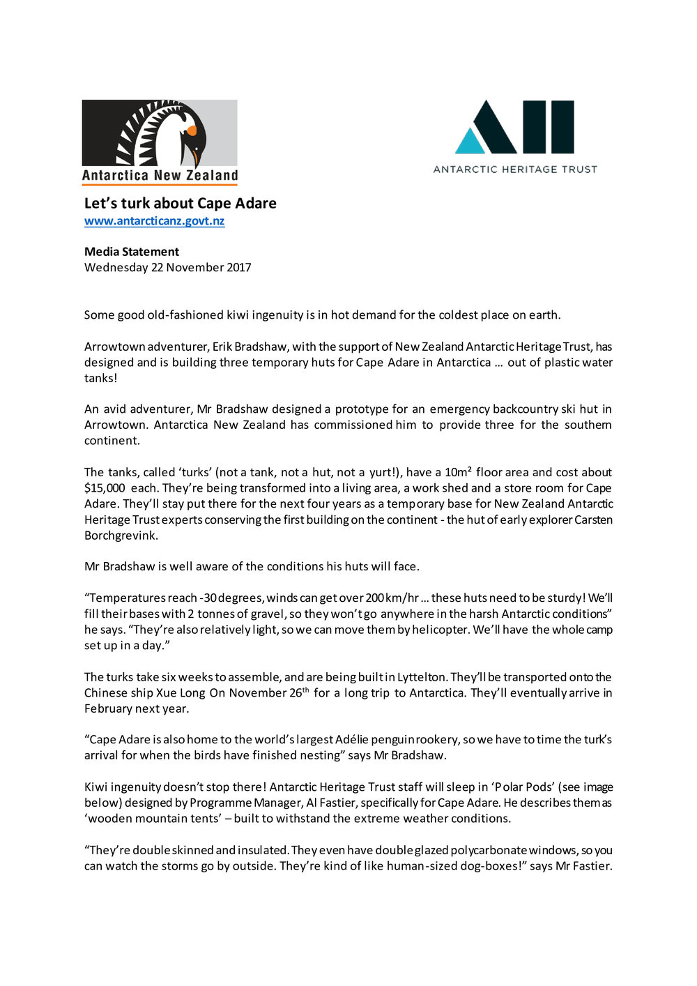 PR - Let's Turk about Cape Adare