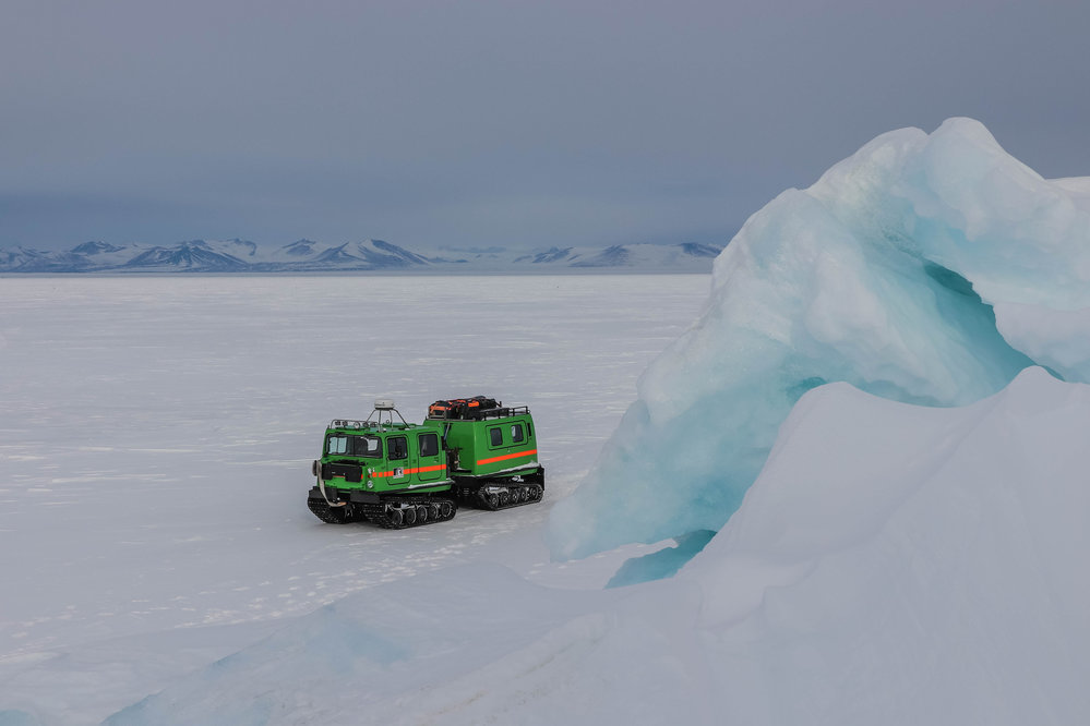 Hagglund with ice in foreground