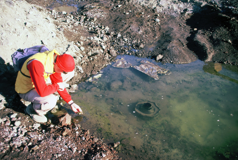 Rob at pond near McMurdo Stn with rubbish and algae mat