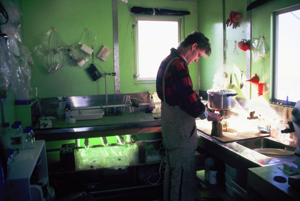 Rob inside the lab hut