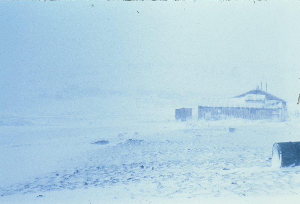 DescriptionBlizzard at Cape EvansPhotographerSatterthwaiteSeason1970-1971Date Taken1970-1971 SeasonOriginalSlideLocationCape EvansGeolocation[1] Position
