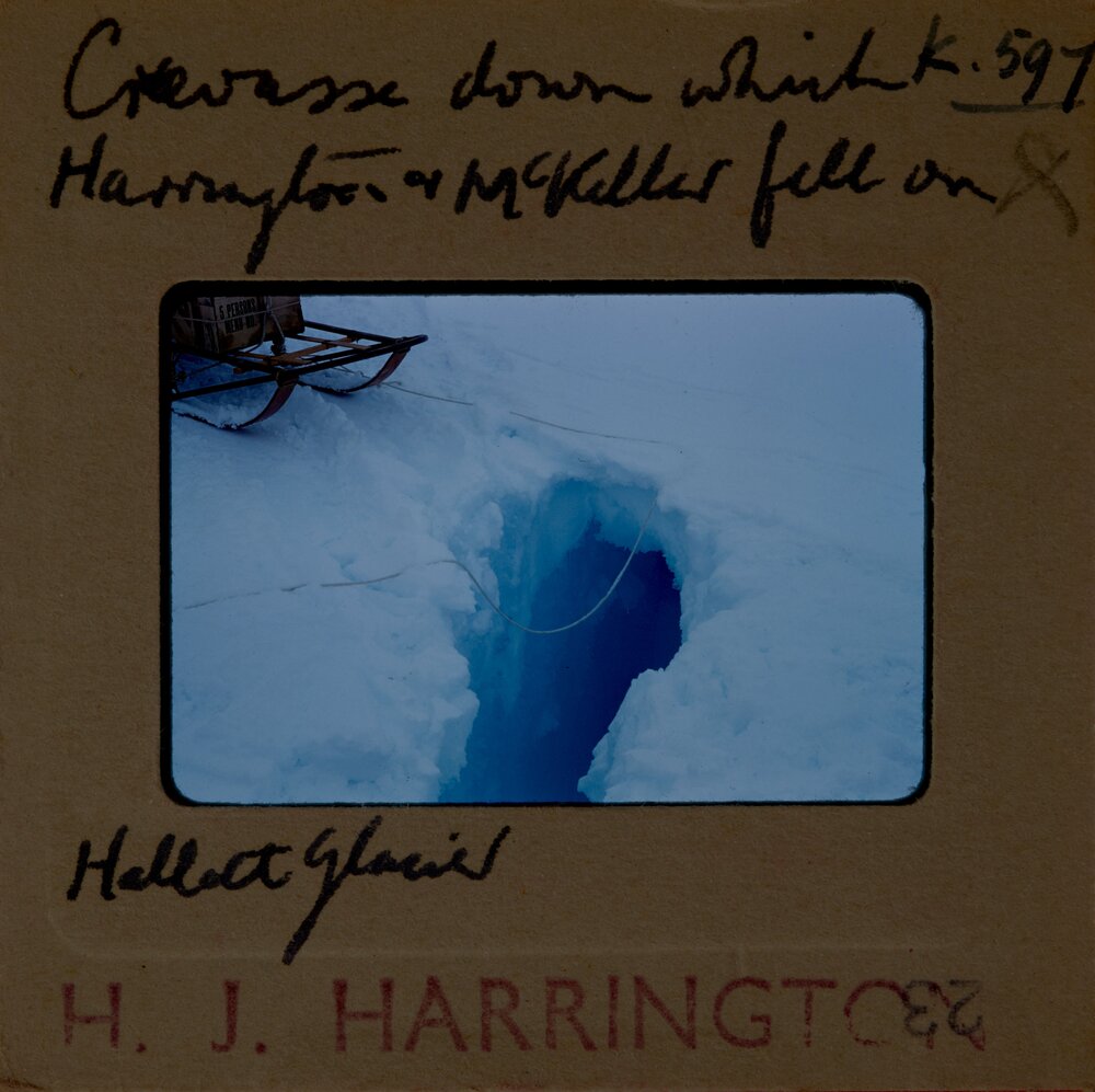 Crevasse down which Harrington and McKellar fell on Hallett Glacier