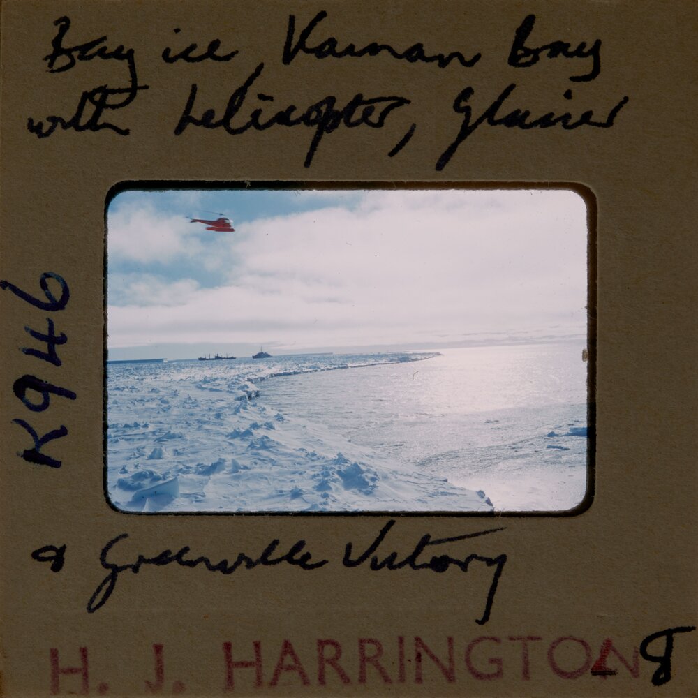 Bay ice Koenan Bay with helicopter, glacier & Greenoller Victory