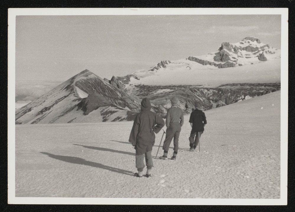Looking towards the crater, and Tahurangi, 9175', the highest peak on Ruapehu. Taken from near our camp on the Te Heu Heu plateau.