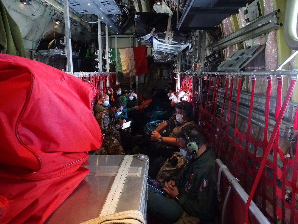 Flying to Phoenix Airfield (NZFX) in the Ross Sea onboard an Italian air force C-130J-30 stretch Super Hercules. The flight contained a mix of people supported by the New Zealand, US, and Italian Antarctic programmes, along with Italian air force crew.