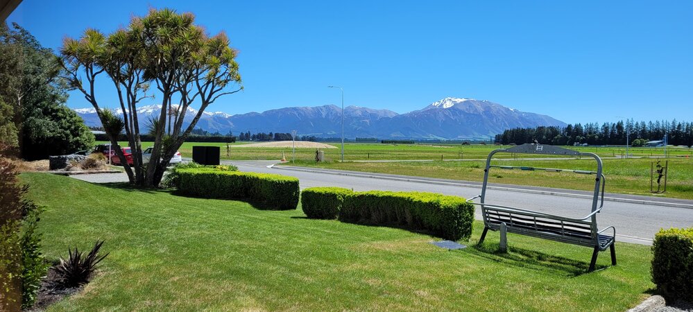 The view out of the window from the lounge at the Southern Cross Lodge in Methven, during the pre-Antarctic deployment isolation period due to COVID-19.