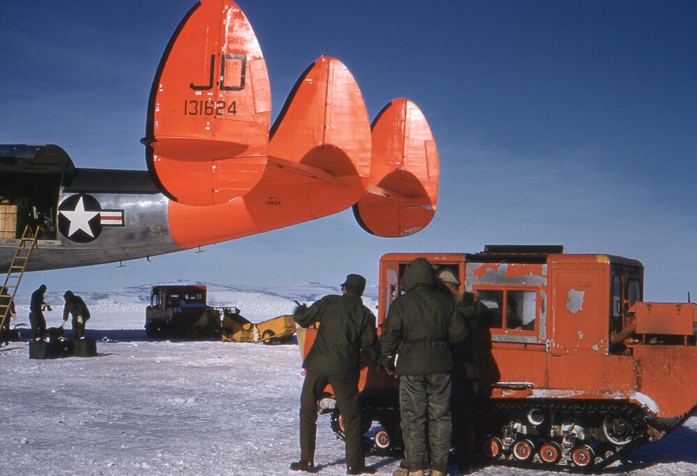 McMurdo Station-USN Lockheed R7V-1 Super Constellation 'Phoenix' (131624) being unloaded & Weasel. Antarctica NZ, accessed 20/04/2026, https://adam.antarcticanz.govt.nz/nodes/view/71634