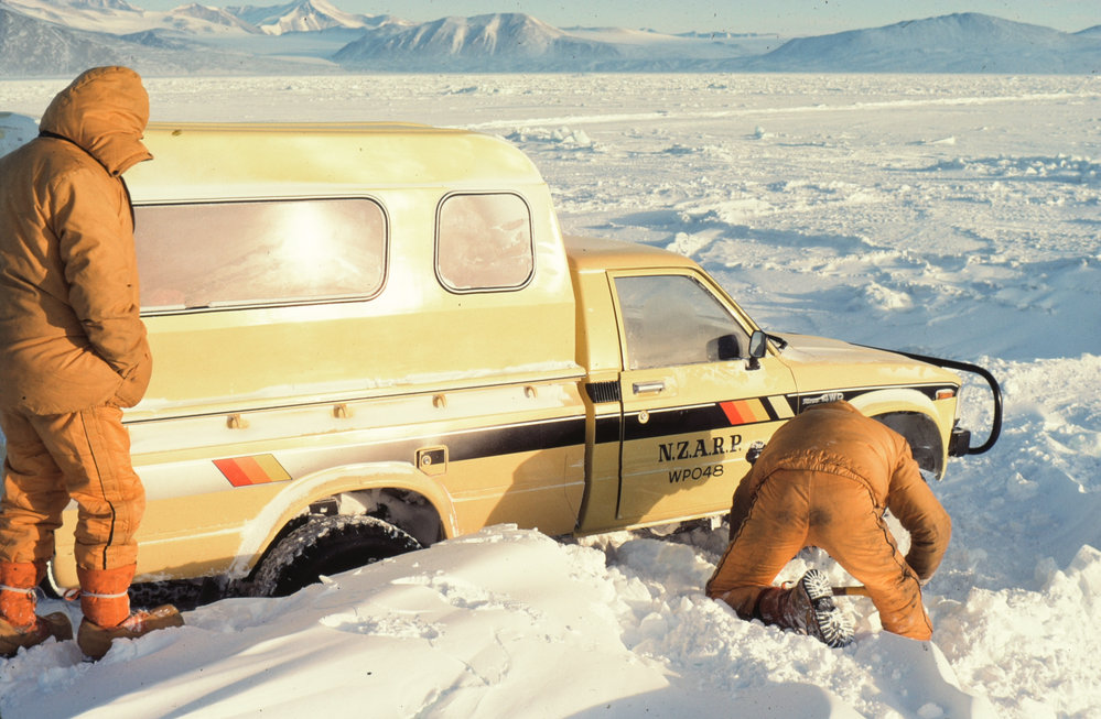 NZARP Toyota stuck in sea ice near CIROS drilling