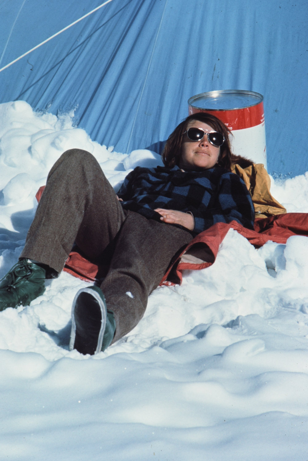 DescriptionRelaxing for a moment in early morning sun - Shapeless Camp, North West SideDepictsJanet Crump PhotographerK LefeverDate Taken1972-12-13OriginalSlideNo. People1LocationShapeless MountainGeolocation[1] Position