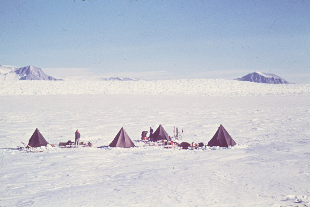 DescriptionAlpine Club Expedition looking towards Mt HopePhotographerB GenetrySeason1959-1960Date Taken1959-1960 SeasonOriginalSlideNo. People2-5LocationBeardmore GlacierGeolocation[1] Position