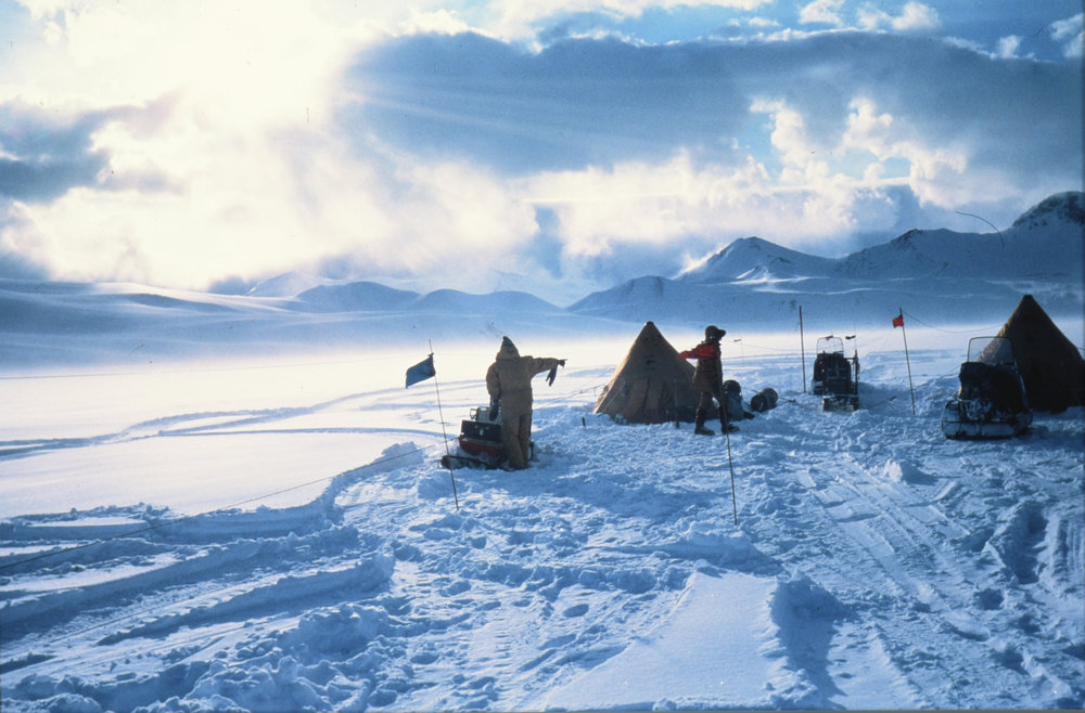 DescriptionCampsite at Mouth of O'Kane Glacier.PhotographerShaun NormanSeason1982-1983Date Taken1982-1983 SeasonOriginalSlideNo. People2-5LocationO'Kane GlacierGeolocation[1] Position