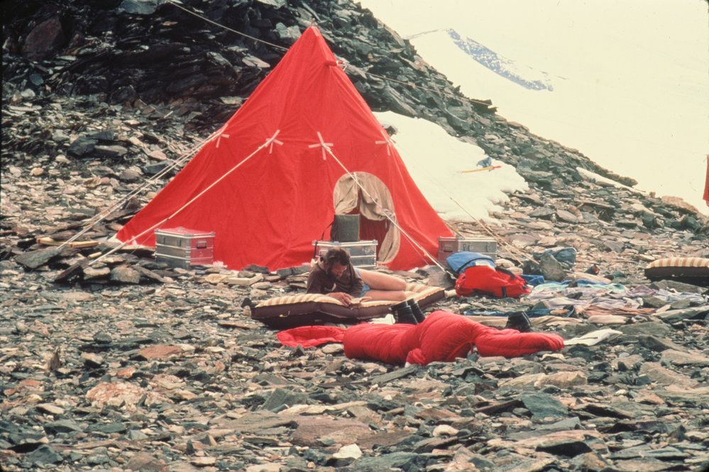 DescriptionGanovex Camp Mount Bruce - Northern Bowers Mountains.PhotographerGreg MortimerSeason1982-1983Date Taken1982-1983 SeasonOriginalSlideNo. People1LocationMount BruceGeolocation[1] Position