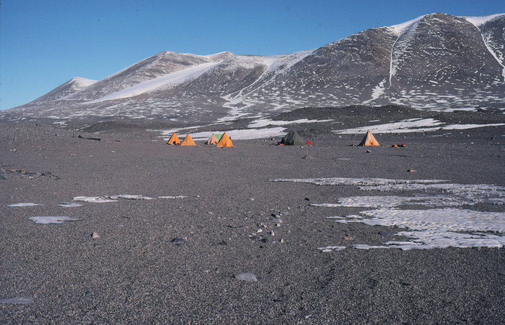 DescriptionWinkie Drill Camp in Taylor Valley from afar.PhotographerSue O'DowdSeason1983-1984Date Taken1983-1984 SeasonOriginalSlideLocationTaylor ValleyGeolocation[1] Position