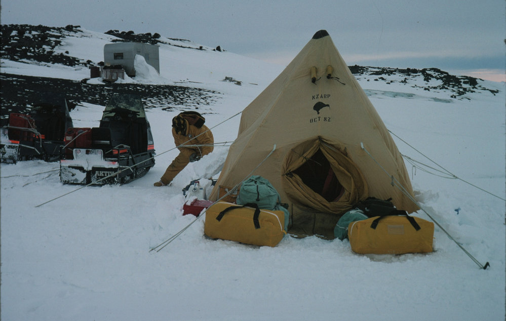 Chris Adams Shovels Snow onto Flaps of Polar Tent at Cape Evans. Antarctica NZ, accessed 02/04/2026, https://adam.antarcticanz.govt.nz/nodes/view/8581