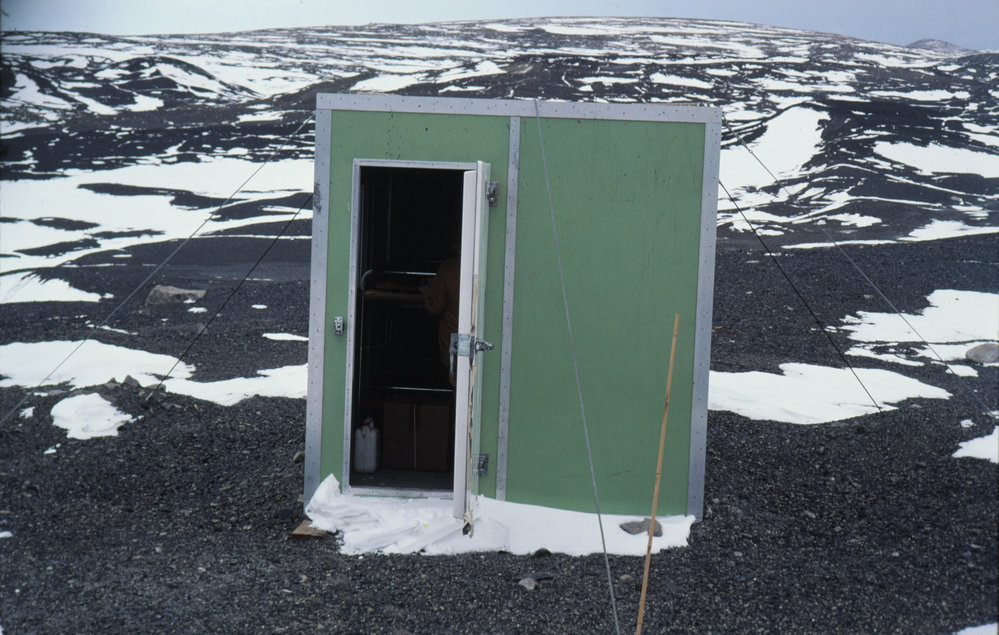 DescriptionCape Chocolate Hut.PhotographerLinda HarrisonSeason1985-1986Date TakenBetween 1st October 1985 and 31st October 1985OriginalSlideNo. People1LocationCape ChocolateGeolocation[1] Position