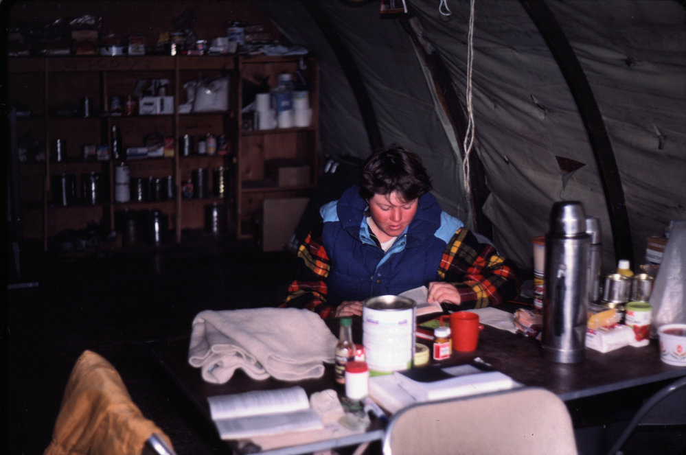 DescriptionAnnette George inside Meserve Refuge Hut.DepictsAnnette George PhotographerRussell KorschDate Taken1985-01-06OriginalSlideNo. People1LocationWright ValleyGeolocation[1] Position