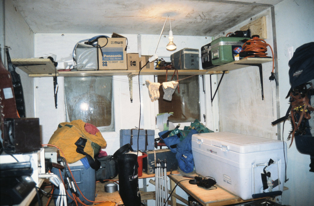 DescriptionTVNZ (Television New Zealand) Gear Inside Hut.PhotographerDon AndersonSeason1990-1991Date TakenBetween 1st January 1991 and 31st December 1991OriginalSlideLocationCape CrozierGeolocation[1] Position