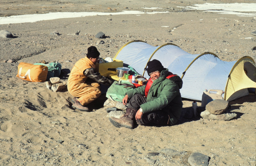 Chinese Guest Scientists - Chen Tingya (right) and Zhang Fu Yuan (left) cooking dinner at Robertson Ridge Camp