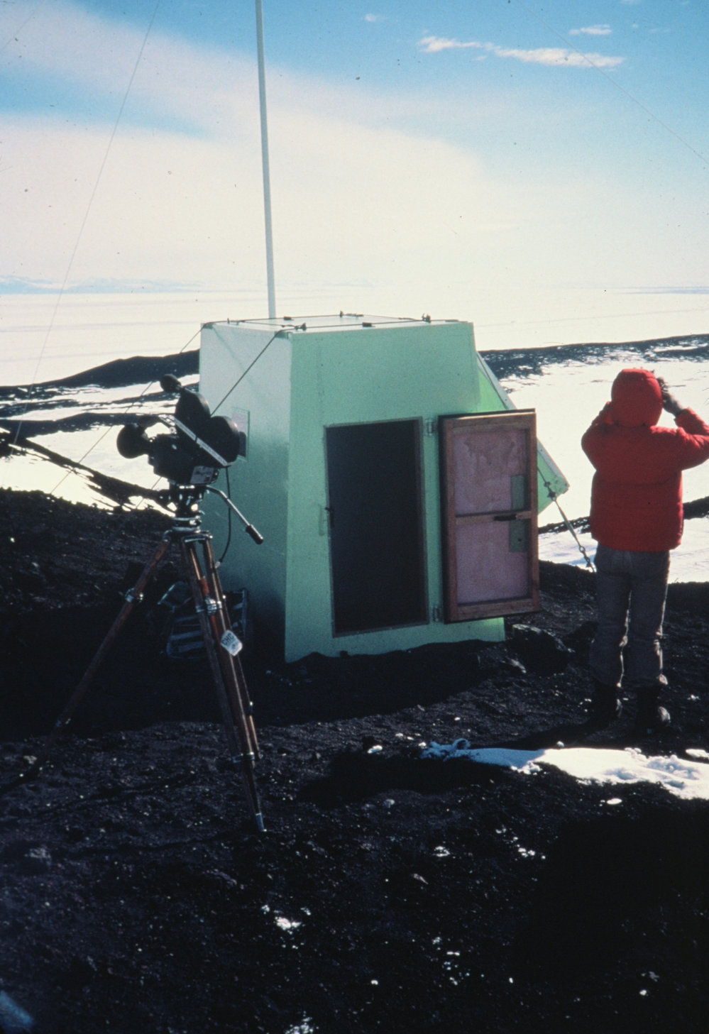 DescriptionRepeater Station at Crater Hill.PhotographerGarth VarcoeSeason1982-1983Date Taken1982-1983 SeasonOriginalSlideNo. People1LocationCrater HillGeolocation[1] Position