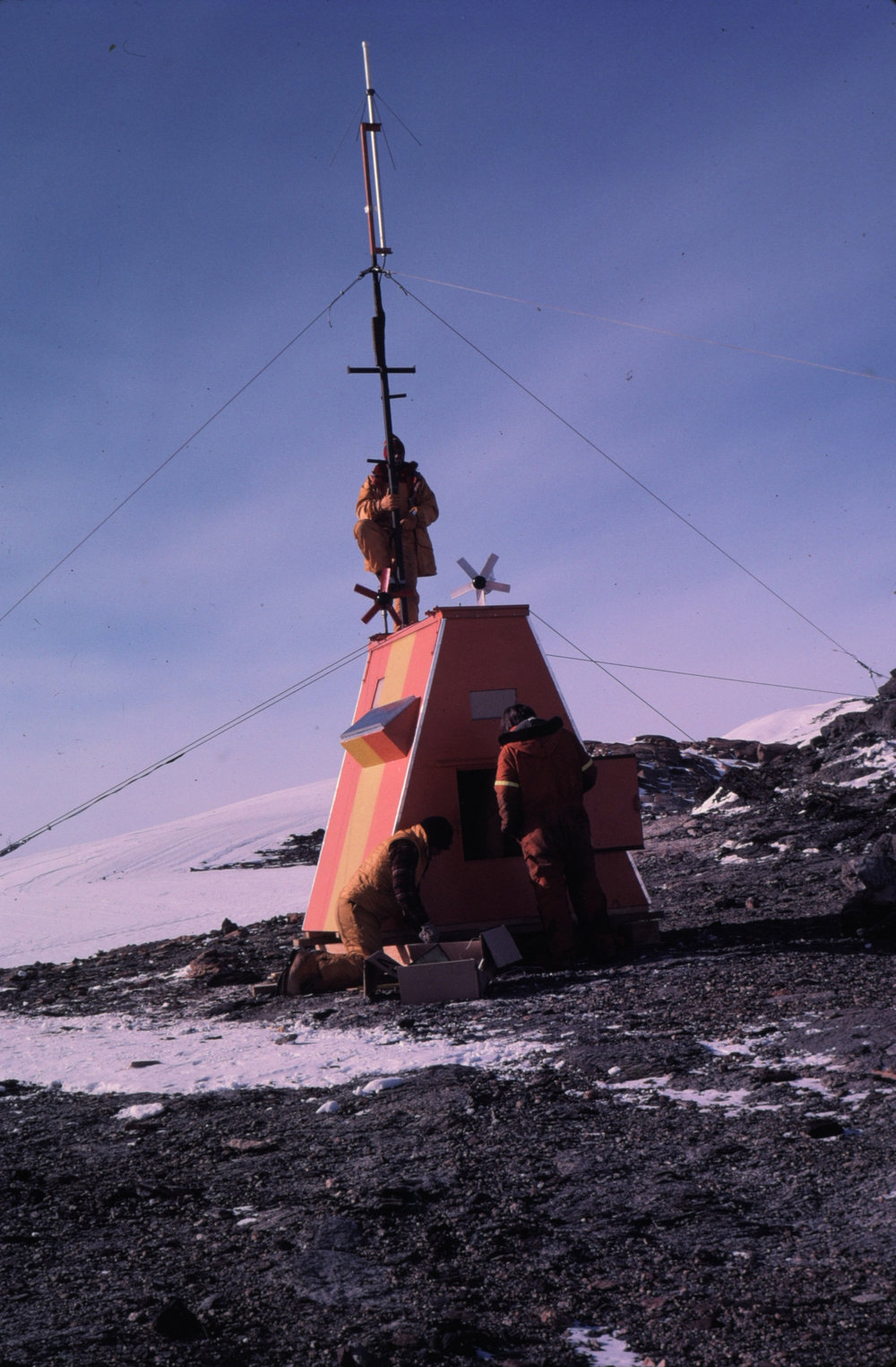 DescriptionInstalling Mast on VHF Repeater on Mount Newall.PhotographerAlison WelchSeason1984-1985Date Taken1984-1985 SeasonOriginalSlideNo. People2-5LocationMount NewallGeolocation[1] Position