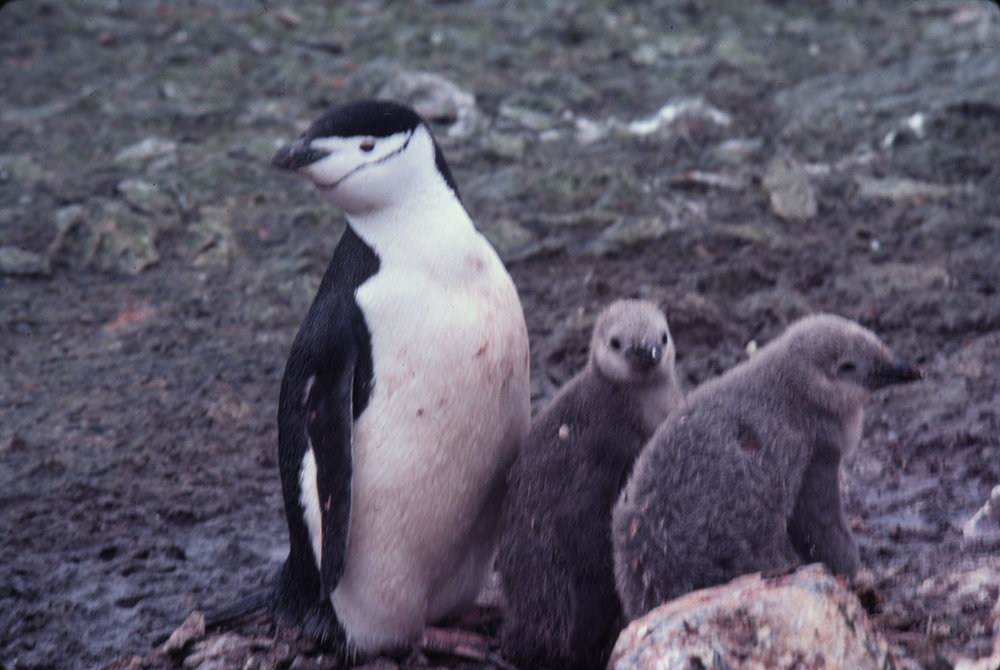DescriptionChinstrap penguin and chicksPhotographerColin MonteathSeason1982-1983Date TakenBetween 1st January 1983 and 31st January 1983OriginalSlideLocationNelson IslandGeolocation[1] Position
