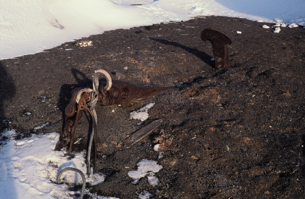 DescriptionAurora Anchor near Scott's Hut at Cape Evans. Historic Huts, Cape Evans - ExteriorPhotographerChris RudgeSeason1990-1991Date Taken1990-1991 SeasonOriginalSlideLocationCape EvansGeolocation[1] Position