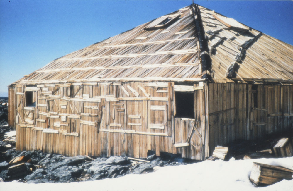 DescriptionWestern Wall of Mawson's Hut, South End in Shade.PhotographerB AhernSeason1981-1982Date TakenBetween 1st December 1981 and 31st December 1981OriginalSlideLocationCape DenisonGeolocation[1] Position