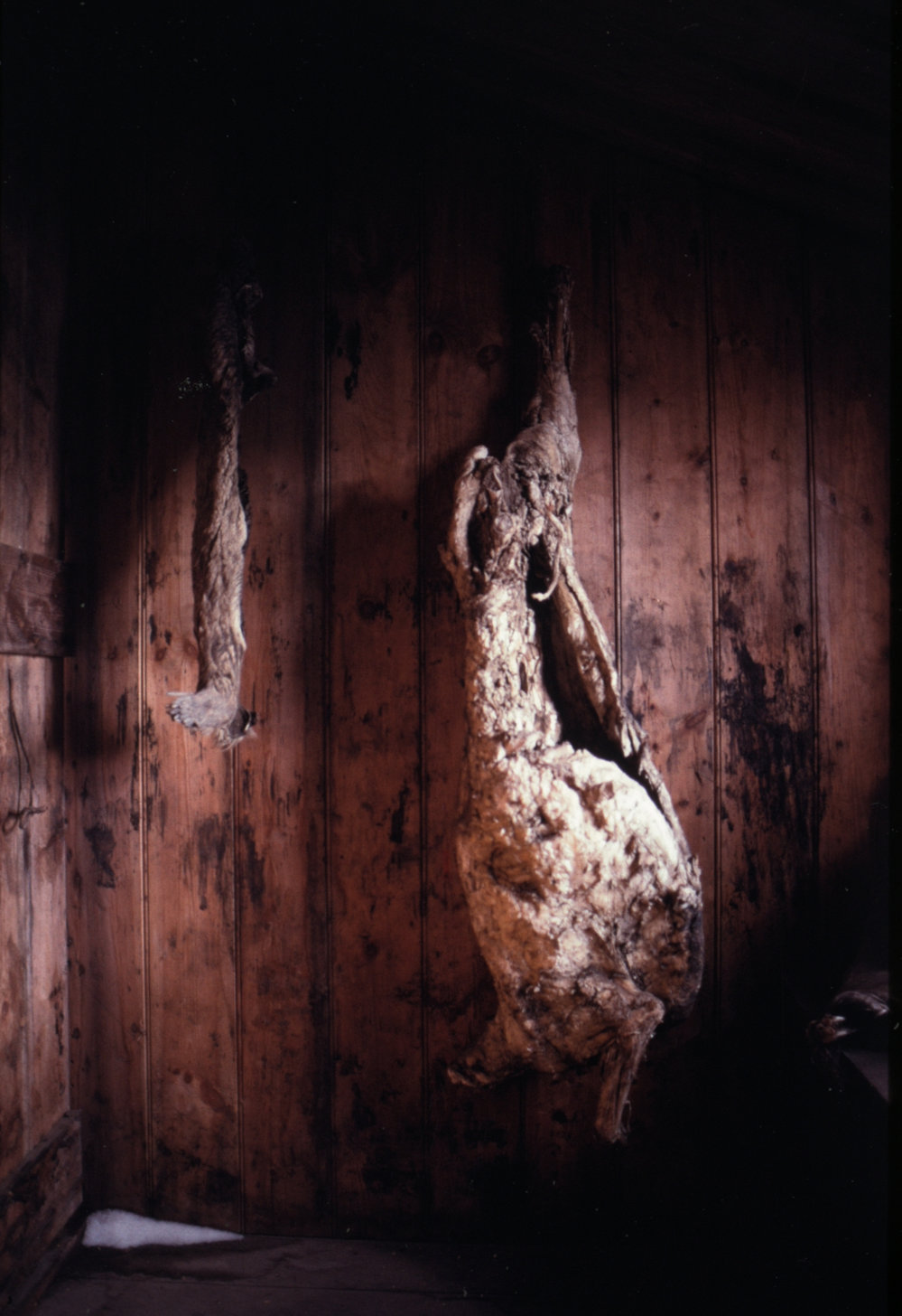 Mutton Carcasses Hanging in Discovery Hut.