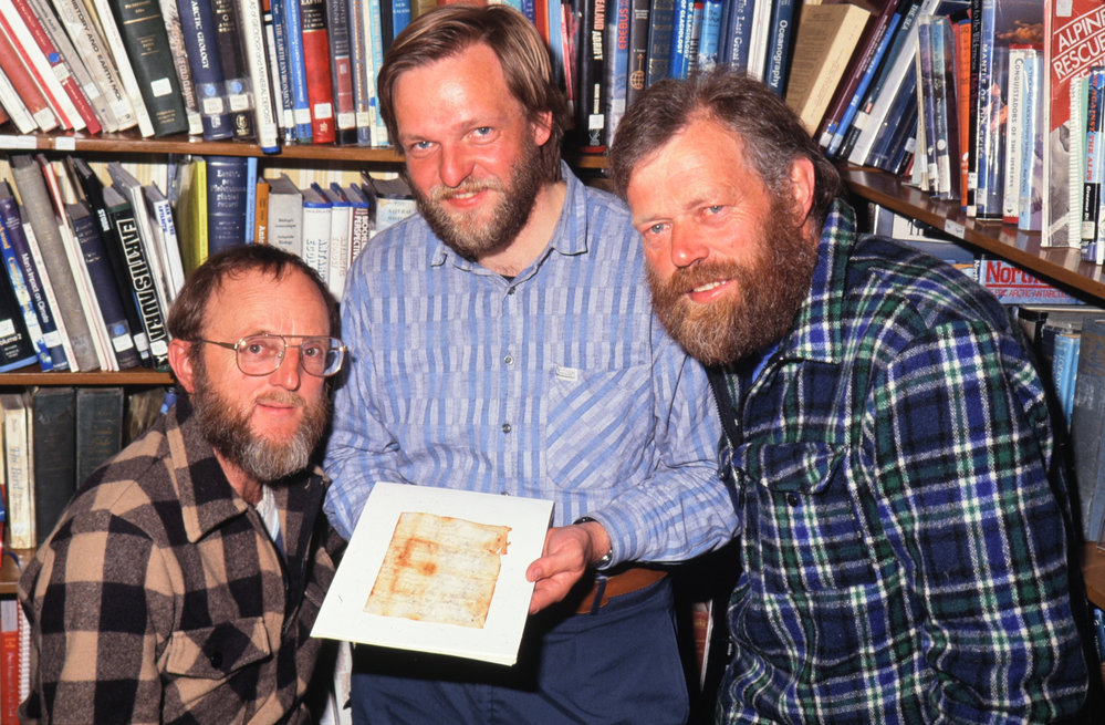 Historic Note Found by Botany Bay Biologists Drs Rod Seppelt, Burkhard Schroeter, and Allan Green.
